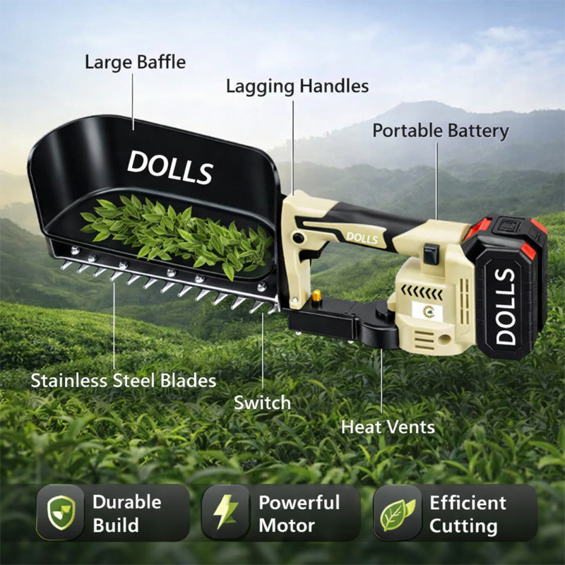 DOLLSS-450A Battery Operated Tea Plucking Machine – A compact, lightweight and powerful mini harvester designed for fast, clean and comfortable tea leaf harvesting with long battery backup and easy handling.